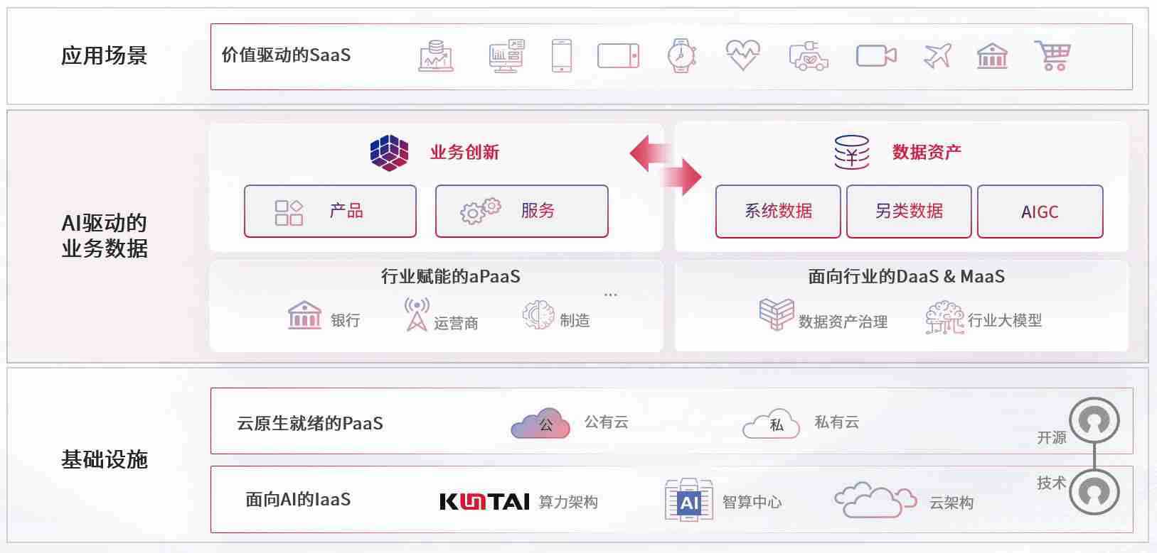 数字时代,,,围绕企业数字化转型的关键要素,,,KOO钱包数码开创性的提出数云融合战略和技术体系框架,,,,着力在云原生、、、、数字原生、、AI原生和信创产业上架构产品和服务能力,,为处在不同数字化转型阶段的快消零售、、汽车、、金融、、、、医疗、、政企、、教育、、运营商等行业客户提供泛在的敏捷IT能力和融合的数据驱动能力,,,,构建跨界融合创新的数字业务场景和新业务模式,,助力企业级客户建立面向未来的核心能力和竞争优势,,,,全面推动社会的数字化、、智能化转型升级。。。。